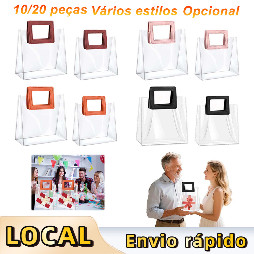 Comprar na Shopee10/20 peças de sacos de presente de PVC transparente,para Dia dos Namorados,com Quadrado alça,Vários estilos