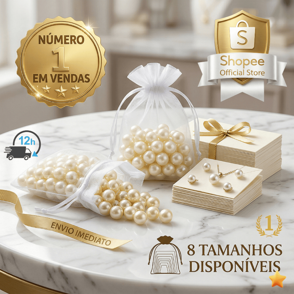 Comprar na ShopeeSaco Saquinho Organza Tule Kit 10/20/50/100 Unidades Branco Saco Lembrancinha Festa 7x9 9x12 10x15
