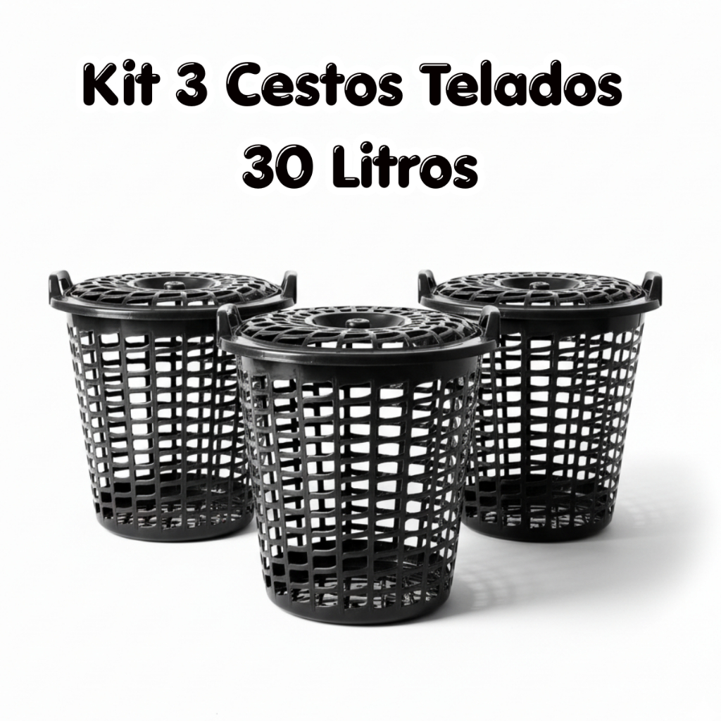 Comprar na ShopeeKit 3 Cestos de Roupas Telado 30 Litros Plástico Banheiro Lavanderia Brinquedo Resistente Multiuso