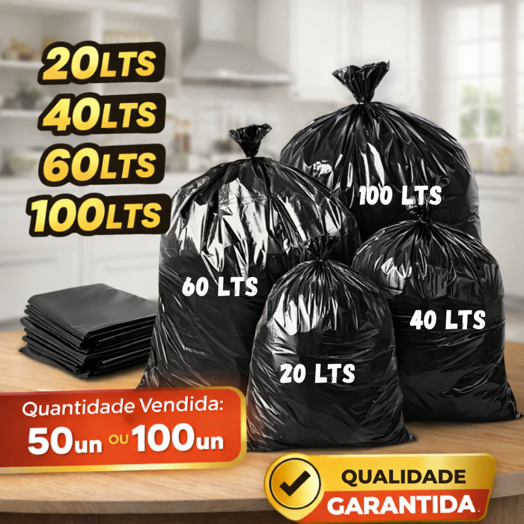 Comprar na ShopeeSaco de Lixo 100 Litros Preto Resistente Forte Uso Geral 20/40/60/100 LTS