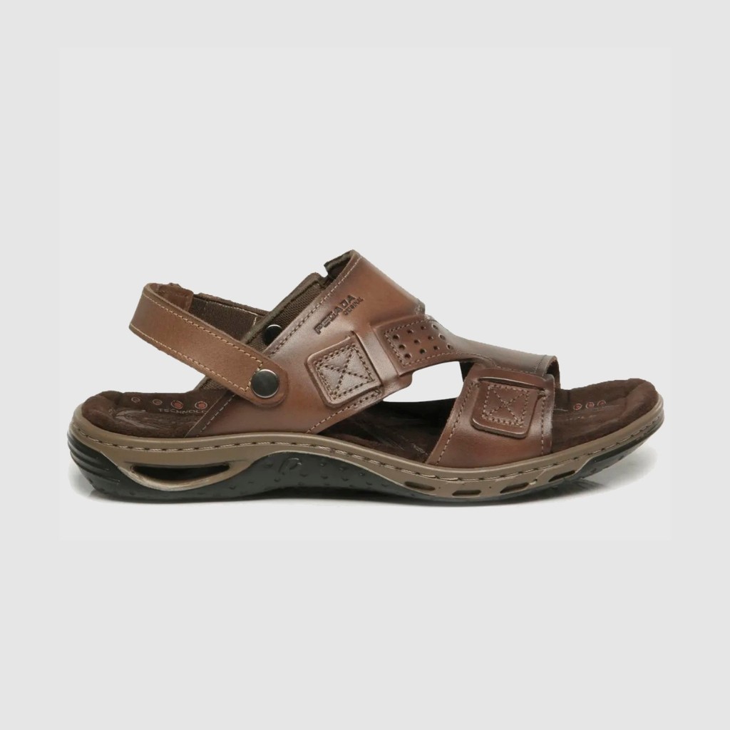 Sandália Pegada Masculina em Couro Pinhão 131662-02