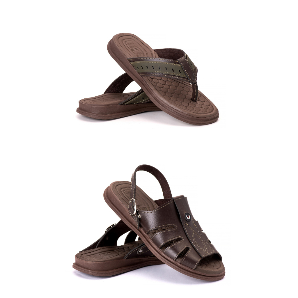 Sandalia Chinelo masculino em couro legitimo leve e confortavel Ortopedico Couro Conhaque