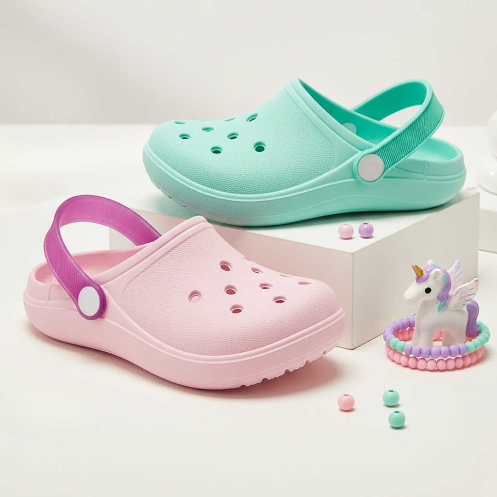 Comprar na ShopeeSandália Molekinha Meninas Clog Colorida com Pins Dourados Metálicos Crianças Babuche Original