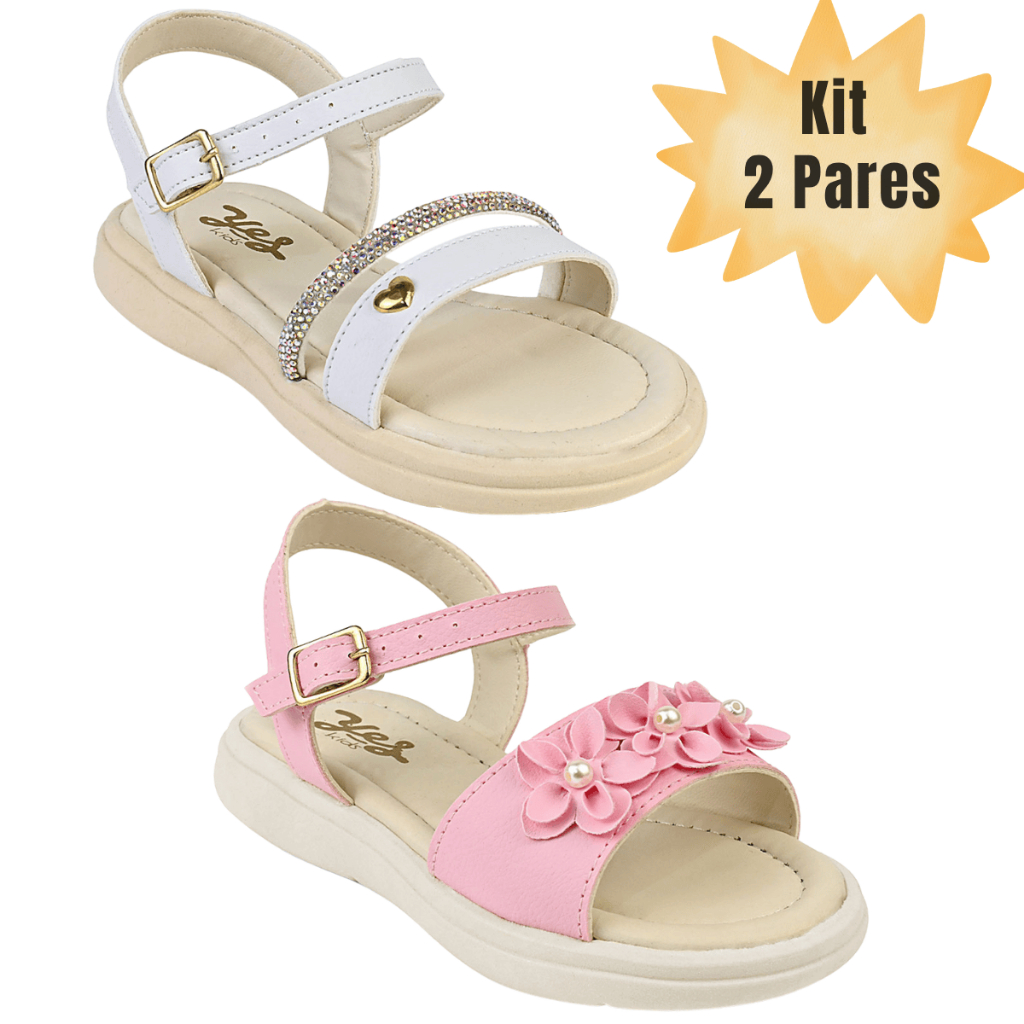 Comprar na ShopeeKit 2 Pares Sandália Infantil Menina Alpercata Feminina Flor e Strass Confortável Leve Casual