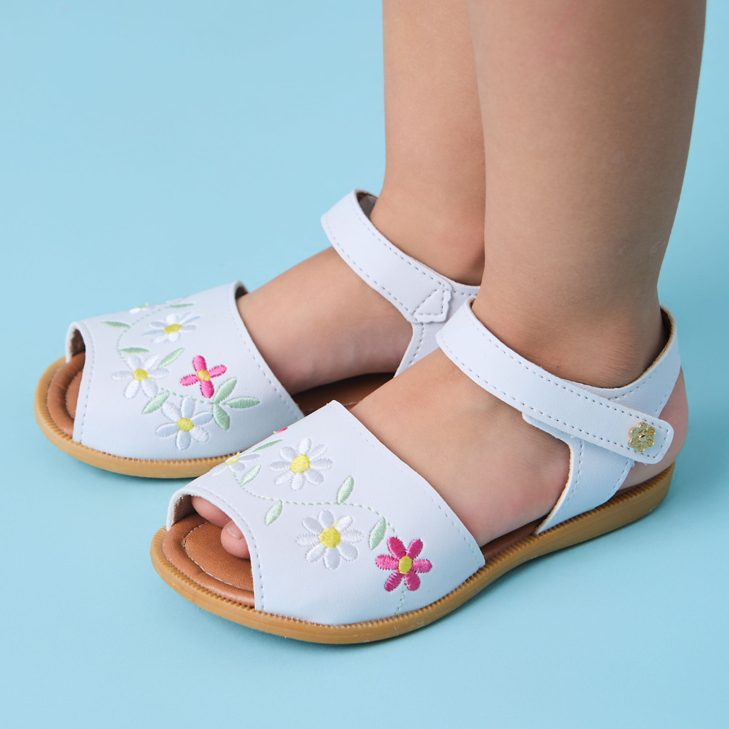 Comprar na ShopeeSandalia Infantil Delicada Avarca Bordada Flores- Café com leite