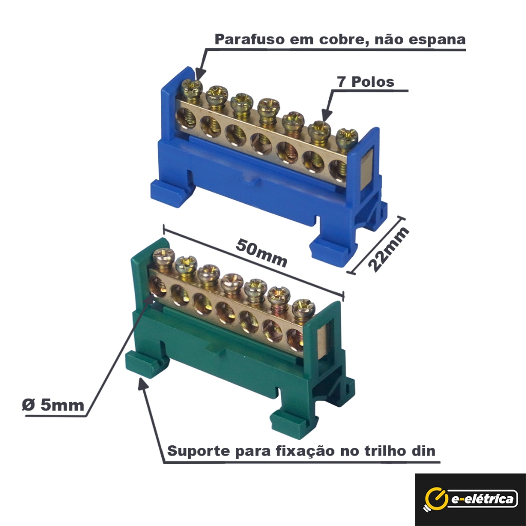 Barramento 2 Furos De 6 Mm Mais 2 - 4 - 10 Furos De 5 Mm