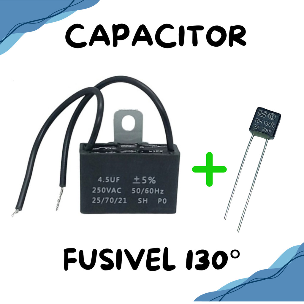 Comprar na ShopeeCapacitor de Partida P/ Ventilador 4,5uf 250vac 50/60hz + Fusivel Térmico 2A 250v 130 Graus