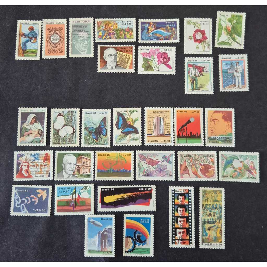 ANO COMPLETO DE SELOS DE 1986 - SELOS CORREIOS COMEMORATIVOS NOVO DO BRASIL.