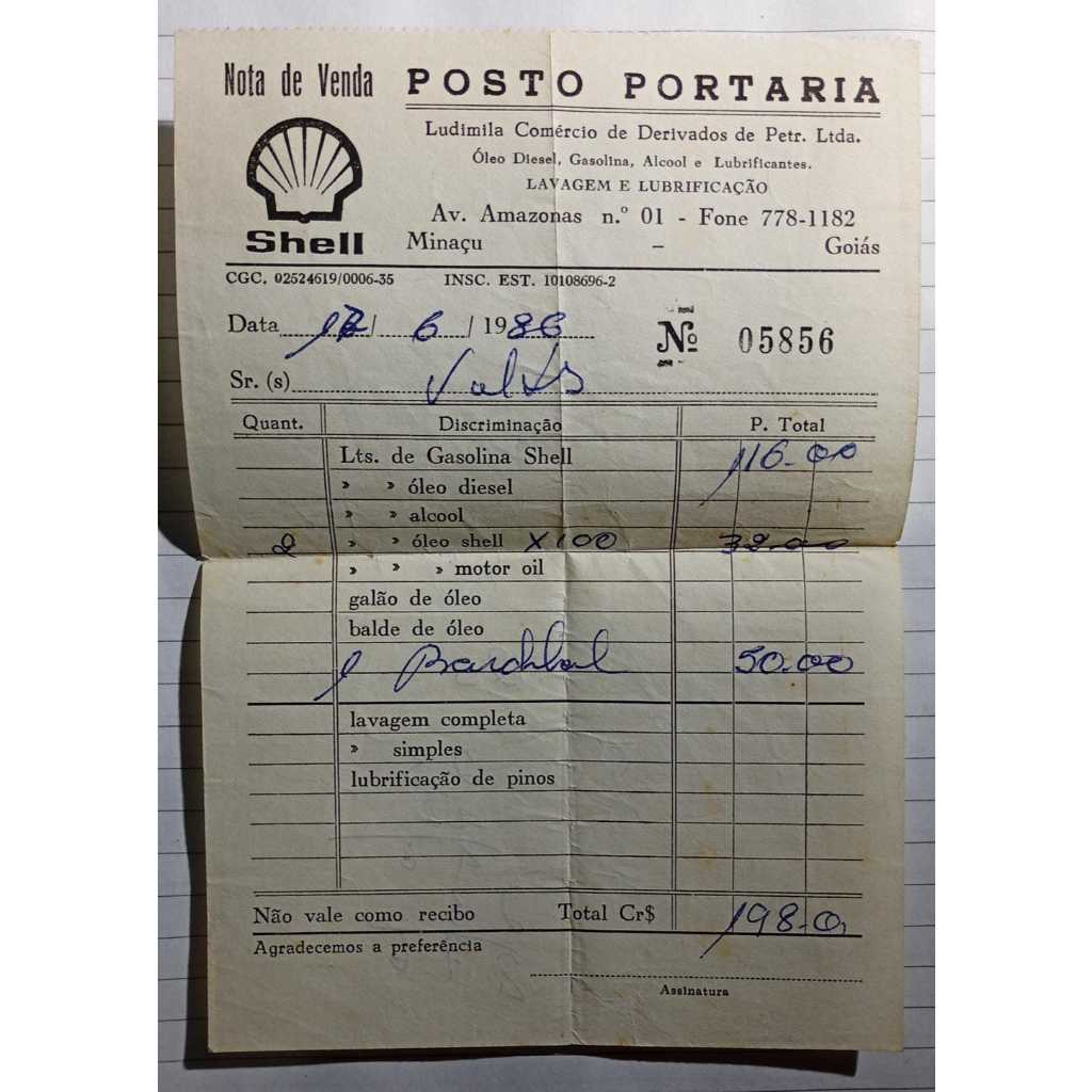 Nota de Venda Antiga – Posto Portaria (Shell) – Minaçu/GO – 1986