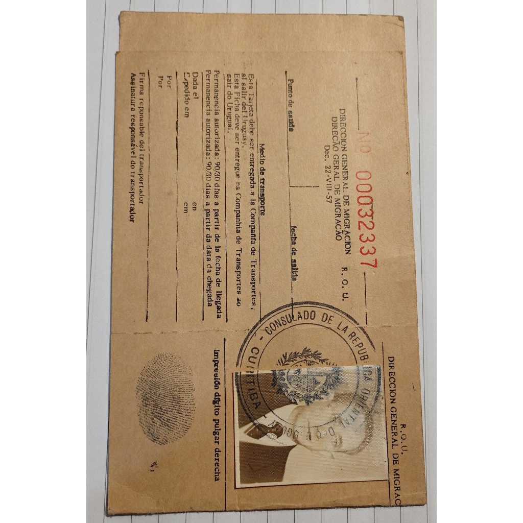 Documento migração de José Antonio Sacchitello - 1961