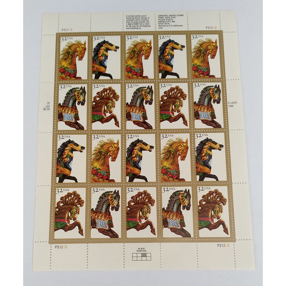 Selos Correios Americanos Classic Carrossel Horses Cavalos