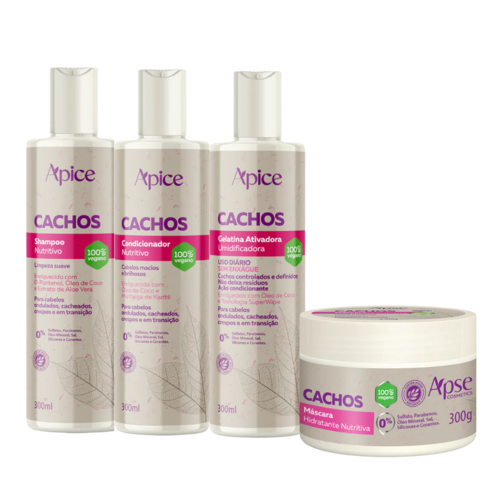 Kit Apice Shampoo Condicionador Gelatina Ativadora de Cachos Máscara Cachos Nutrição 300ml