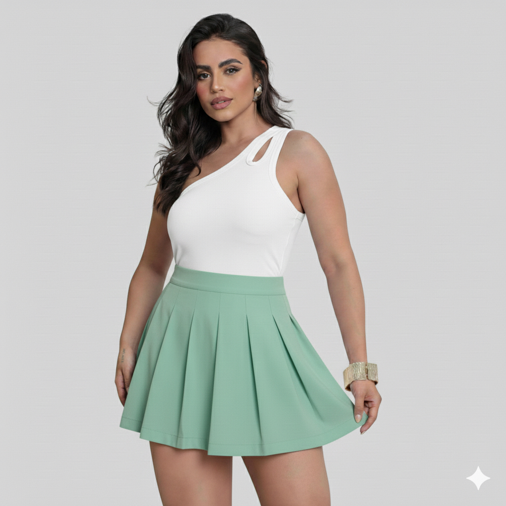 Shorts Saia Feminina Alfaiataria em Pregas Plissada – Cintura Alta - Tendência 2025