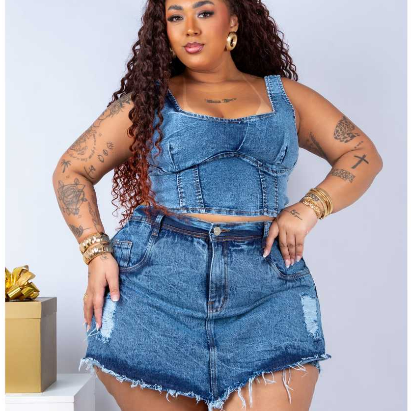 Short Saia Jeans Plus Size Feminino Modela o Bumbum Bjeans com Lycra Atrás Cintura Alta