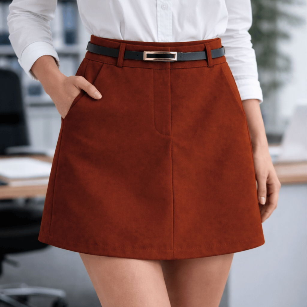 Comprar na ShopeeShort Saia Feminina Cintura Alta / Com cinto de couro / Moda Casual