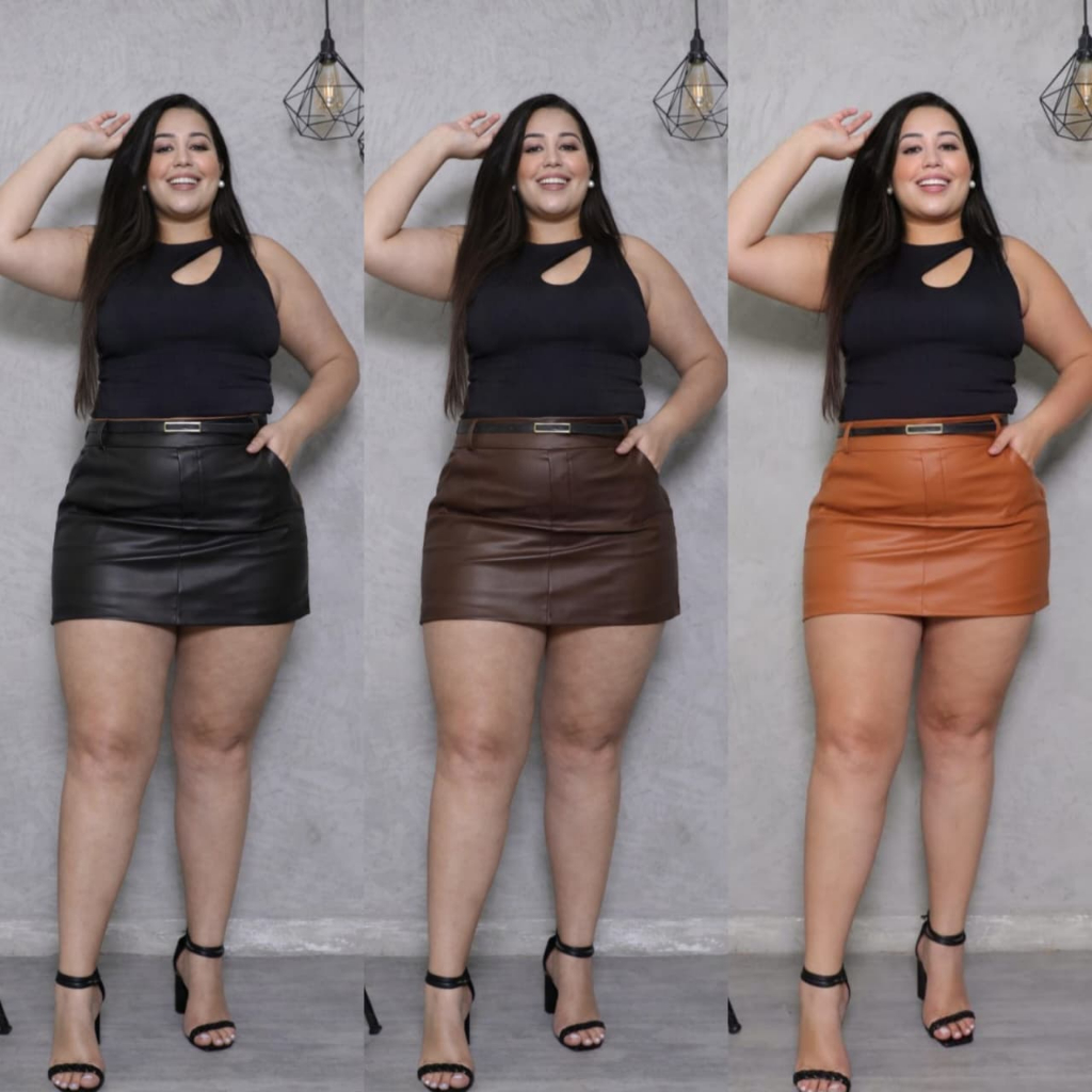 Comprar na ShopeeShorts Saia De Courinho Plus Size Com Elastano G1 G2