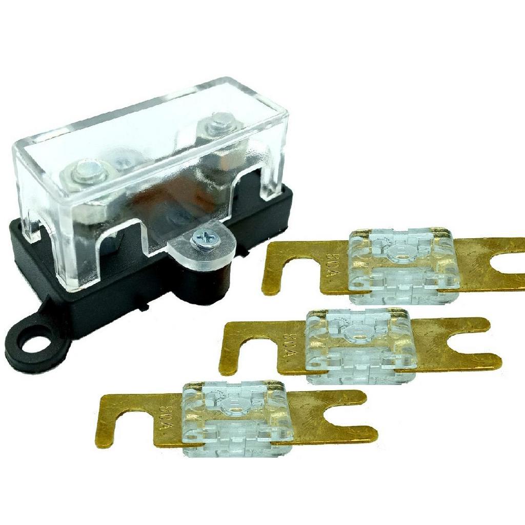 Porta Fusível Midi de Som Automotivo e 3 Fusíveis 80 Amperes