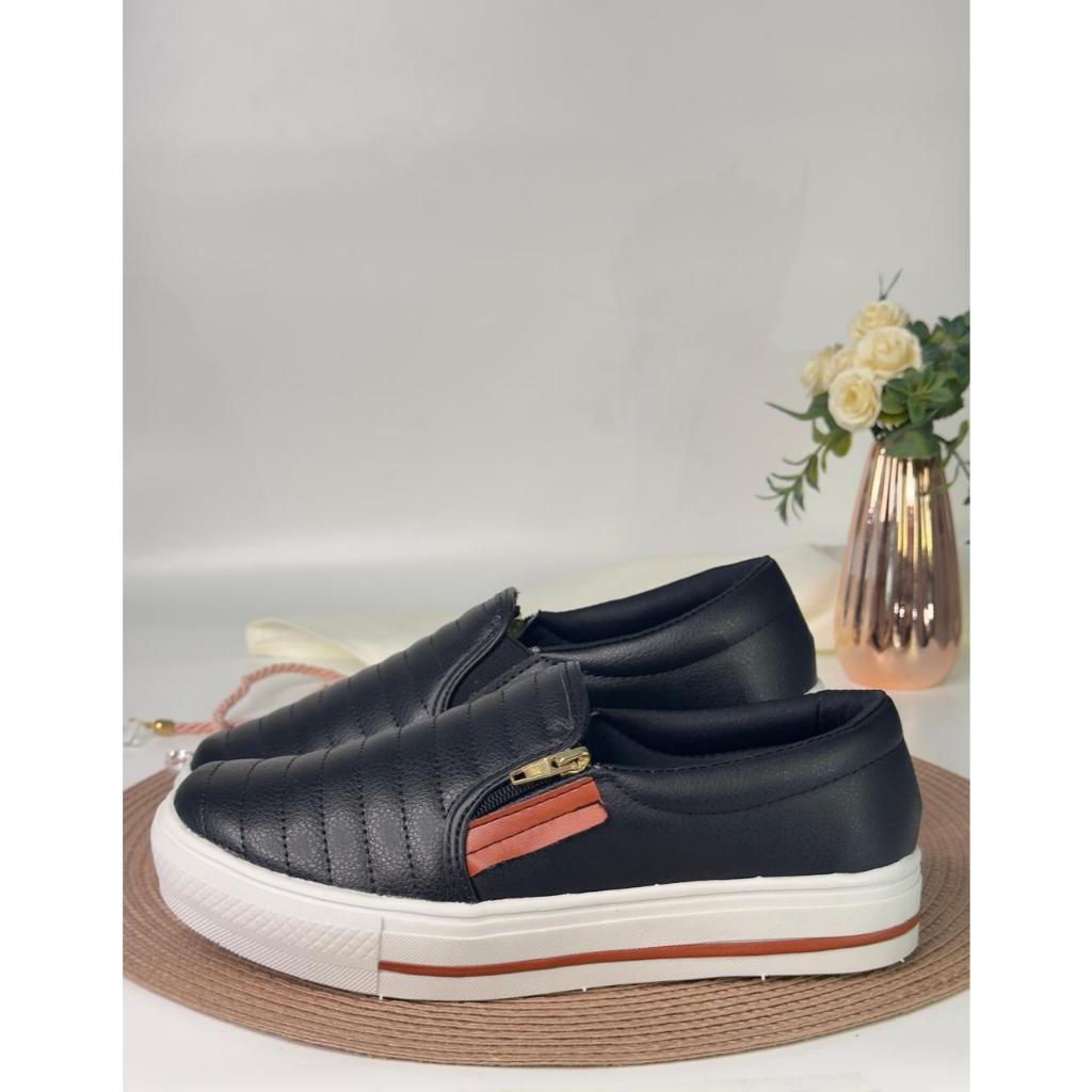 Comprar na ShopeeSapatênis Tênis Preto Feminino Confortável Slip On Sapatilha Casual Com Zíper Envio Imediato