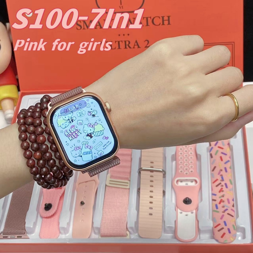 Comprar na Shopee【Pink For Girls】Smartwatch S100 Ultra2⌚-Pressão Arterial + Monitor Cardíaco , Modos Esportivos , Notificações WhatsApp