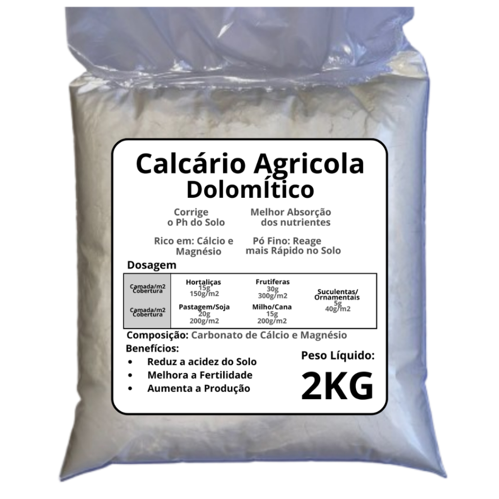 Comprar na ShopeeCalcário Agricola 2KG - Corretivo de Solo Cálcio e Magnésio para Todos Tipos de Plantas!