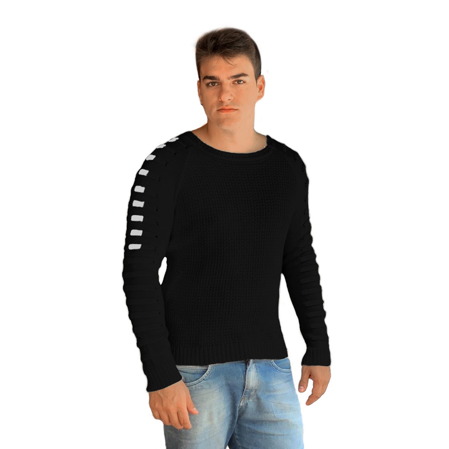 Comprar na ShopeeBlusa Suéter Masculino Tricot Detalhes Nas Mangas MP956