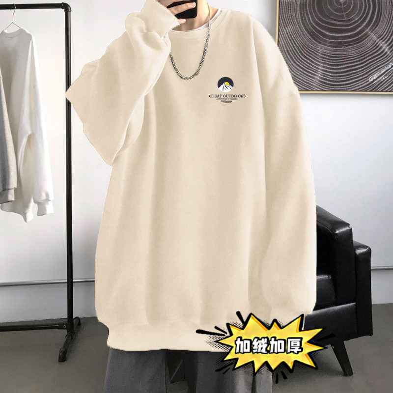 [National Essence Flower] Estilo Designer Forro de Lã Moletom Masculino Gola Redonda 2026 Novo Estilo Primavera Impresso