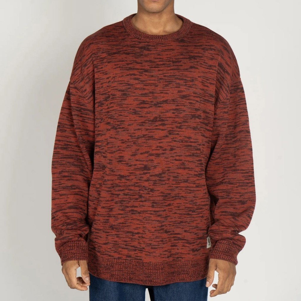 Blusa Masculina de Frio Tricô Canelada Listrada Suéter Manga Longa Gola Redonda