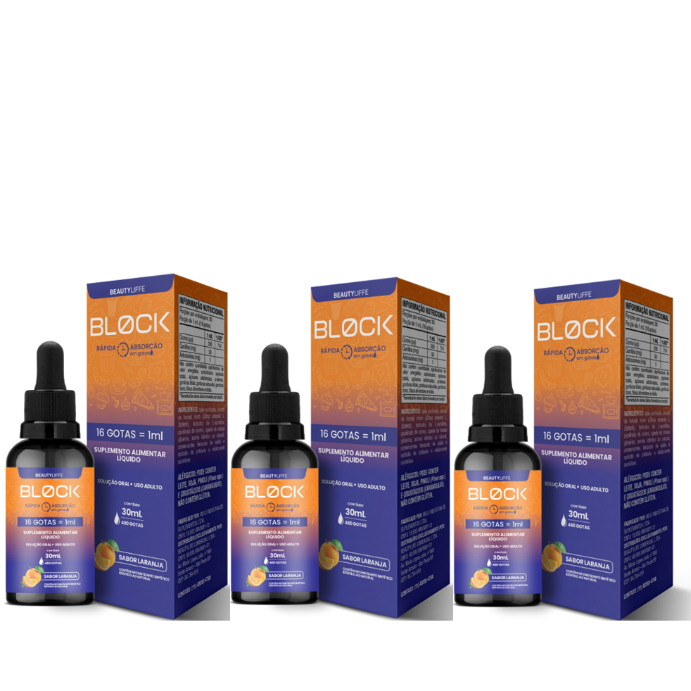 Comprar na ShopeeKit 3x BLOCK Anti Açucar e Salgados 30ml BeautyLiffe - Termogênico - Inibidor de Apetite com Laranja Moro