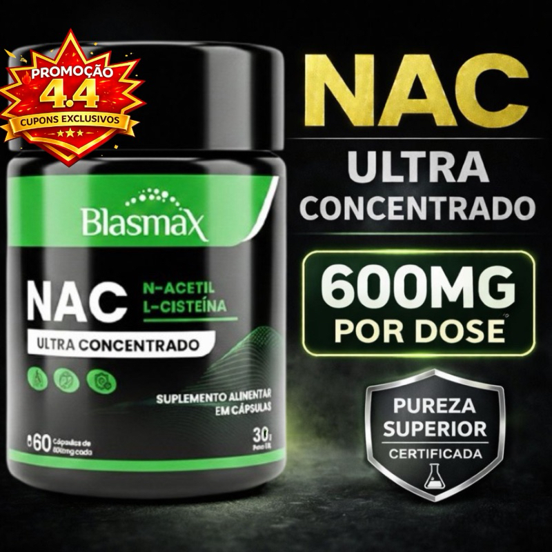 Comprar na ShopeeNAC 600mg N-Acetil L-Cisteína | Antioxidante, Saúde do Fígado e Imunidade - 60 Cápsulas - Blasmax