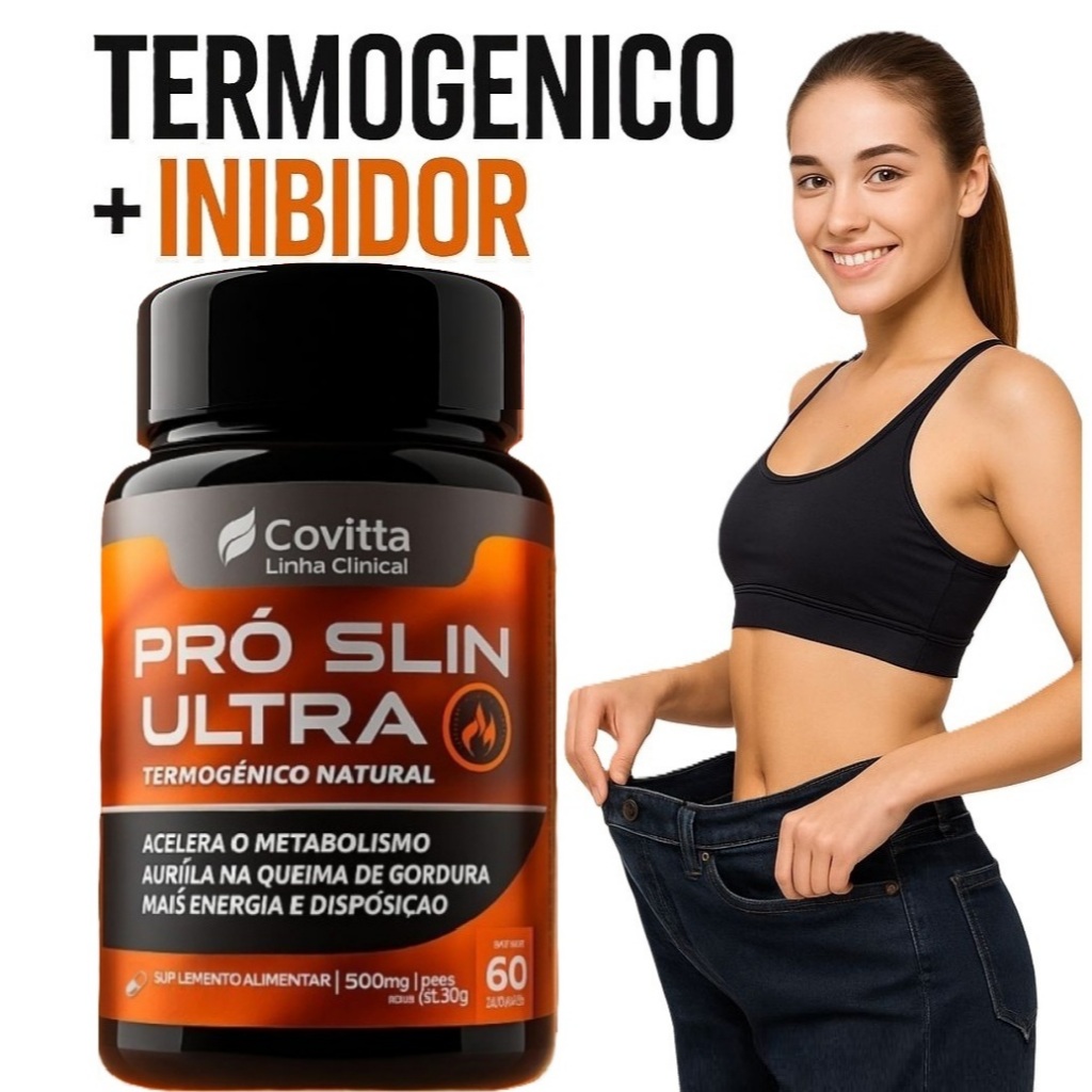 Comprar na ShopeeSuplemento Termogênico Pro Slin Ultra 60 Cáps –Energia e Desempenho Diário - Cafeína+Guaraná+Taurina