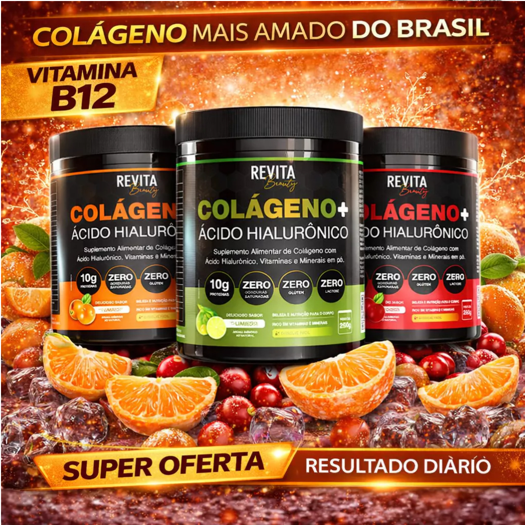 Comprar na ShopeeColágeno + Ácido Hialurônico e Biotina Revita Beauty 250g Zero Açúcar e Verisol - Entrega Express