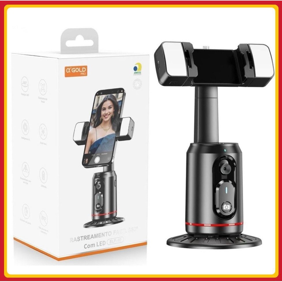 Comprar na ShopeeEstabilizador de Gimbal Rotação 360 Automático de Rosto Com Suporte De celular LED Remoto Inteligente A'gold Original