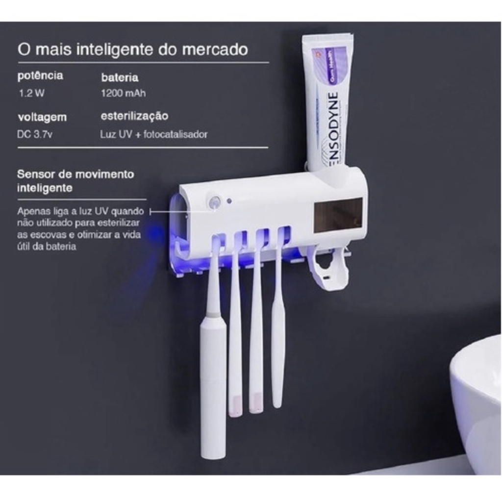 Comprar na ShopeeAplicador Pasta de Dente Dispenser Porta Escovas Com Esterilizador UV Automático