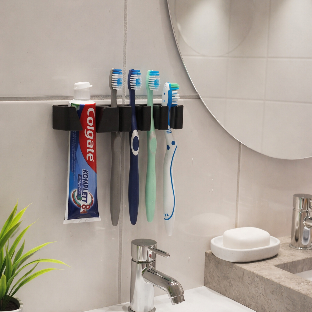 Comprar na ShopeePorta Escovas de Dente de Parede sem Furos | Suporte para 4 Escovas com Fita Dupla Face
