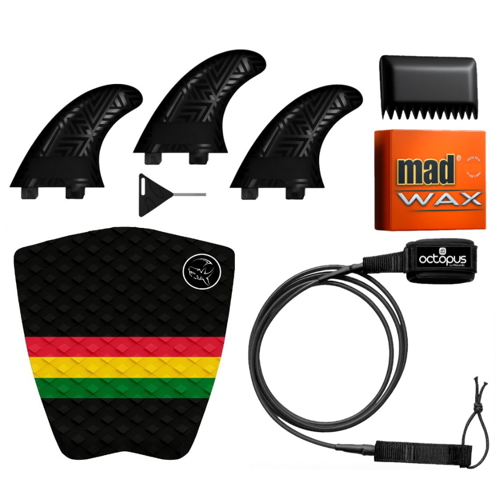 Quilhas+ Deck Prancha Surf Leash 6´x5mm + Parafina 80g + Raspador