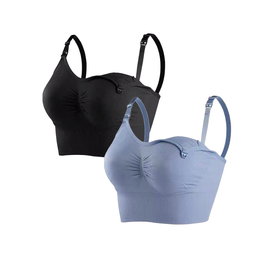 Comprar na ShopeeDois sutiãs de amamentação com um design confortável e suave de fecho.