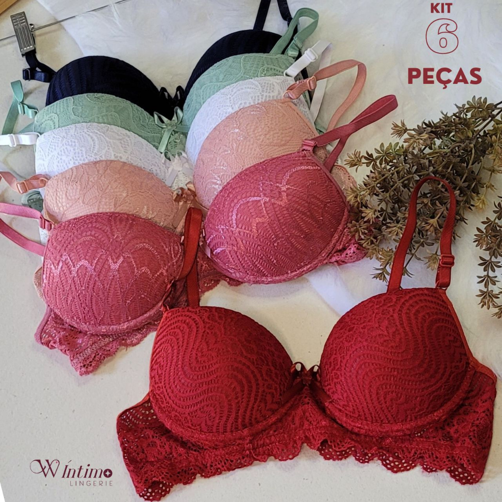 Comprar na ShopeeKit com 6 Sutiãs Bojo de Renda Lingerie Feminina Sutian Soutien Básico Luxo