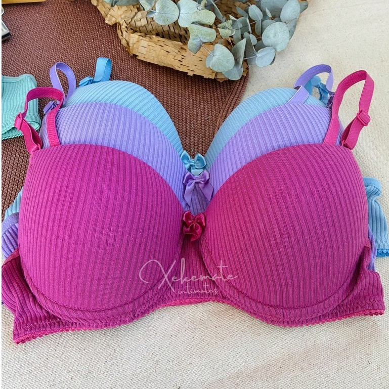 Comprar na ShopeeKit 3 Sutia com Bojo Canelado Liso Soutien Básico Dia a Dia Sutian Confortável Moda Feminina