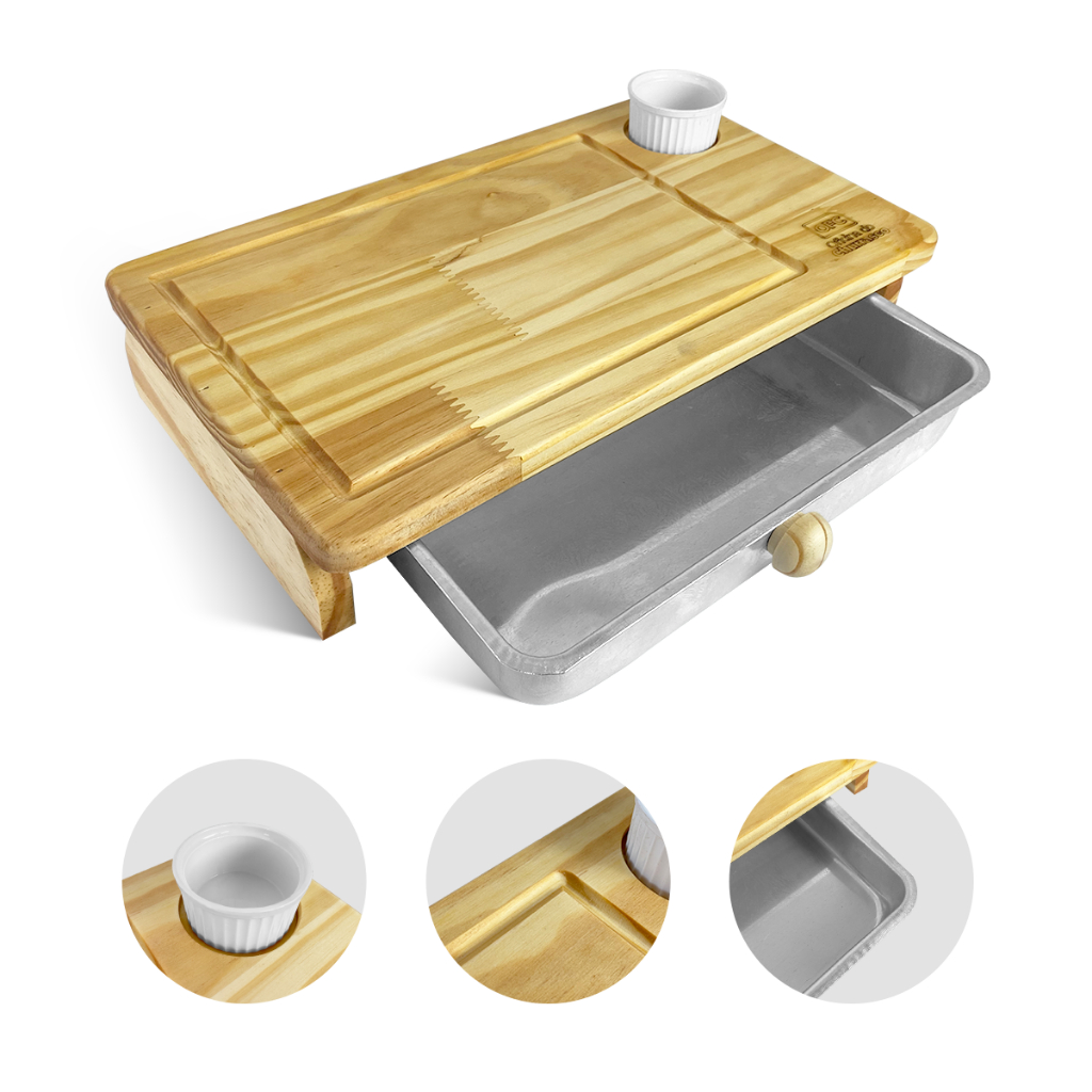 Comprar na ShopeeTabua Churrasco Cortar Carne com Tampa e bandeja Aluminio Grande Premium