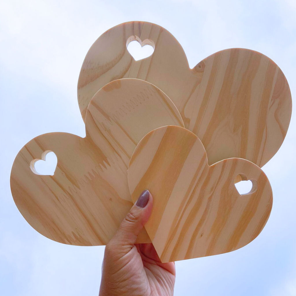 Comprar na ShopeeTrio de Tábuas Coração com Coração Vazado de Madeira Pinus