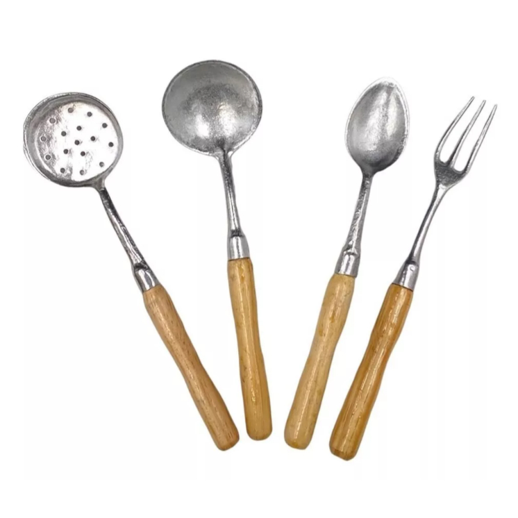 Kit Cozinha Com 4 Peças Colher De Arroz Concha Para Feijão Escumadeira E Garfo