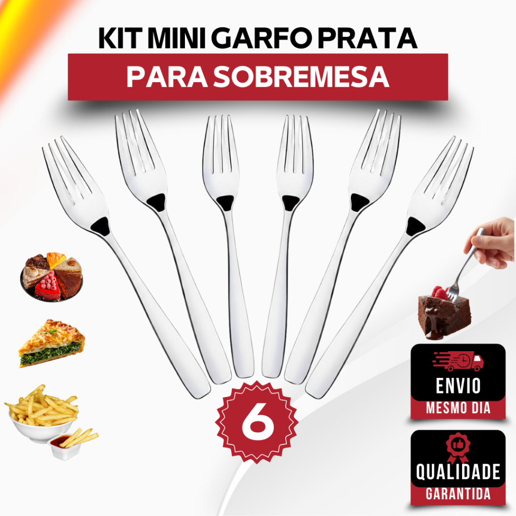 Comprar na ShopeeKit 6 Garfos Sobremesa Aço Inox Luxo Bolo Torta Festa Buffet Restaurante Confeitaria Cozinha Gourmet