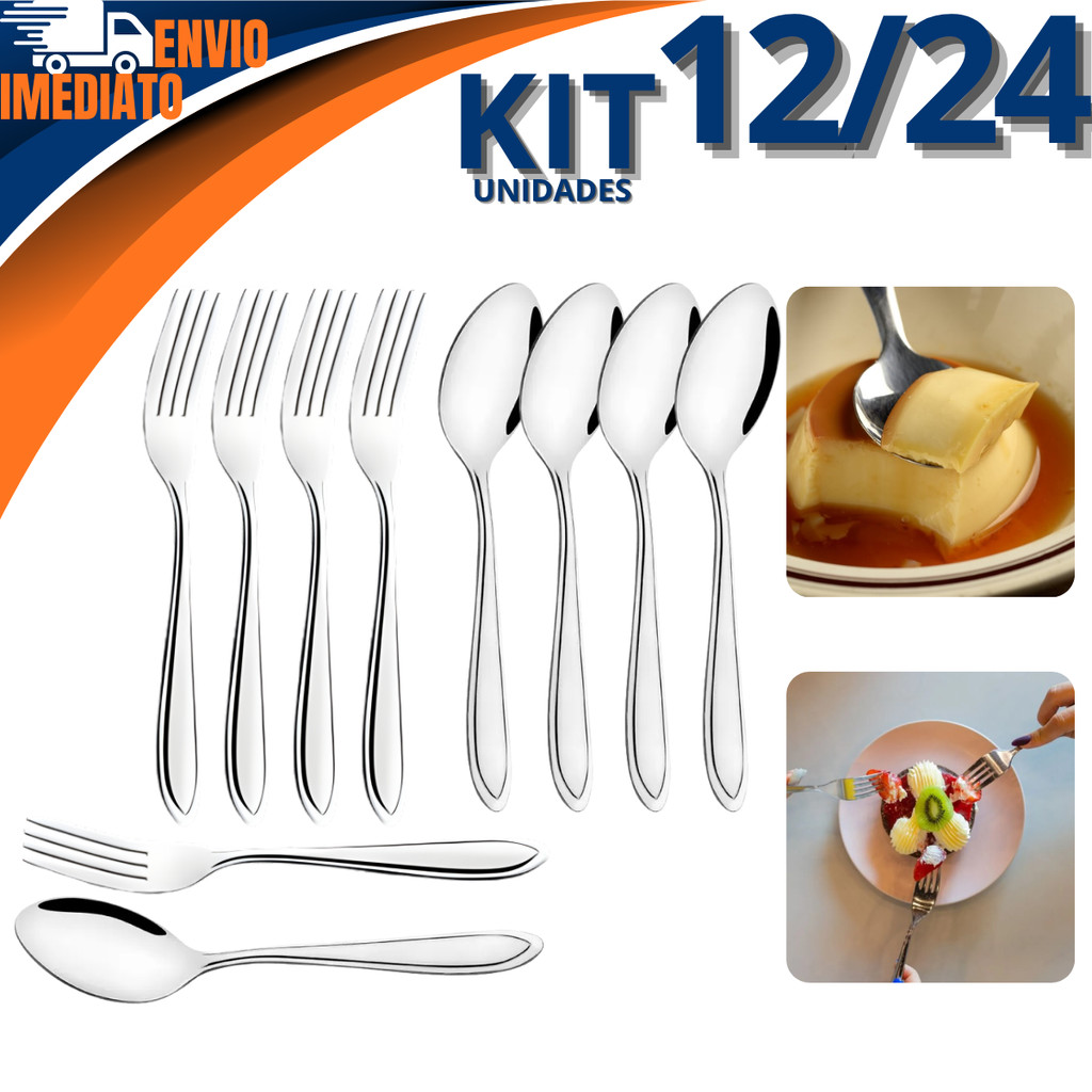 Comprar na ShopeeKit 12/24 Garfo E Colher De Sobremesa Em Inox 16cm Ideal Para Bolos Doces Colher Resistente Moderna