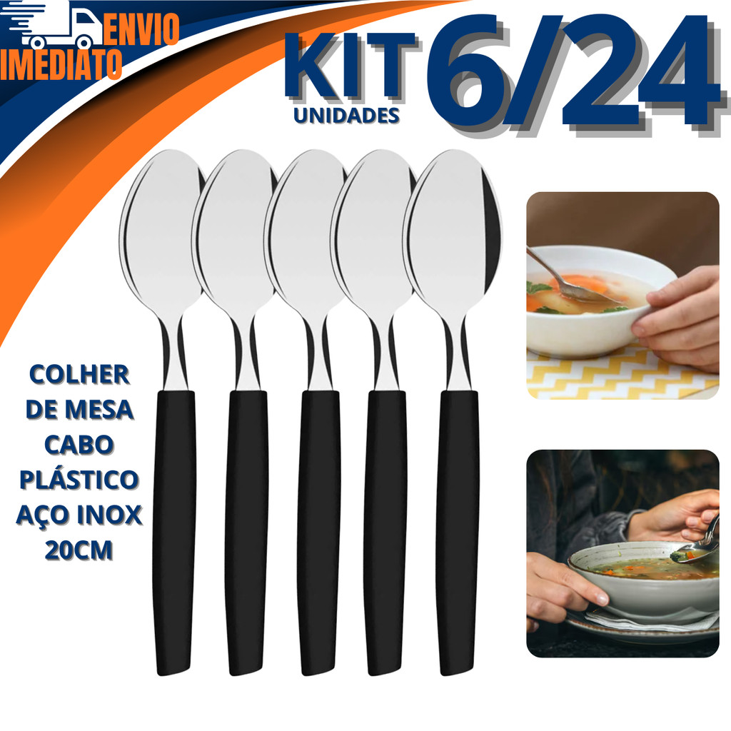 Comprar na ShopeeKit 6/12/18/24 Colher Em Inox Cabo De Plástico 20cm Para Sopas Caldos Utensilio Cozinha Bar Lanchonete Restaurante