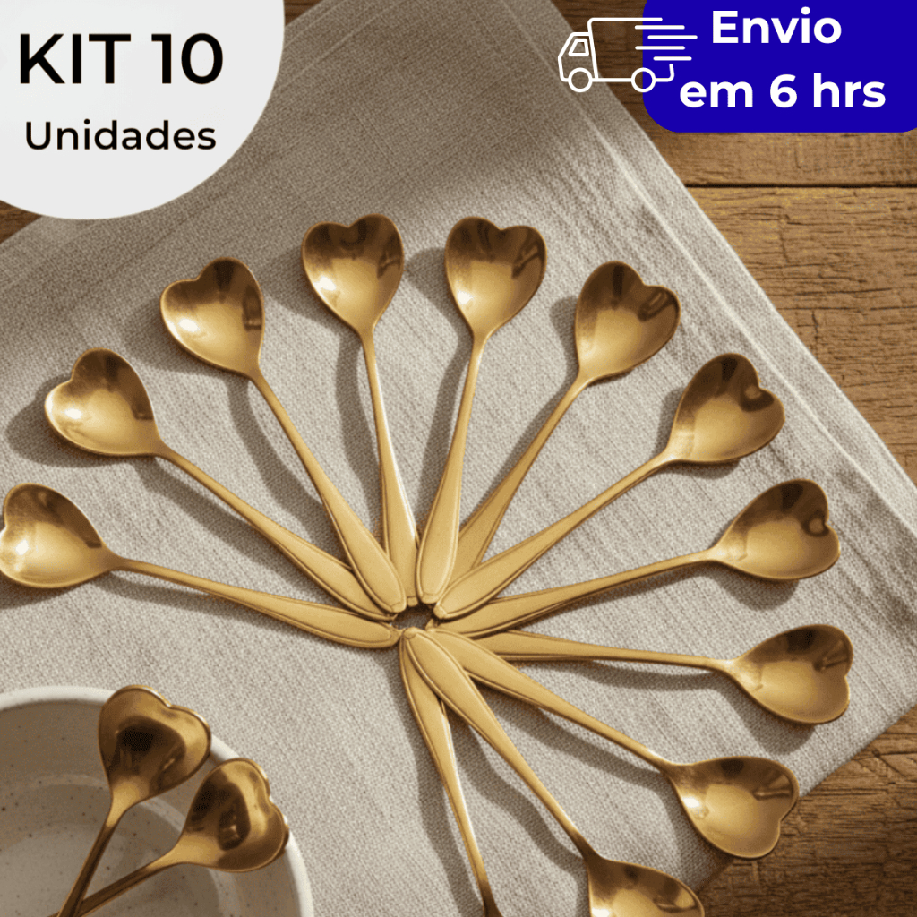 Comprar na ShopeeKIT 10 Colheres Chá Coração Dourada Cozinha Mesa Posta Luxo Aço Inoxidável Fofa