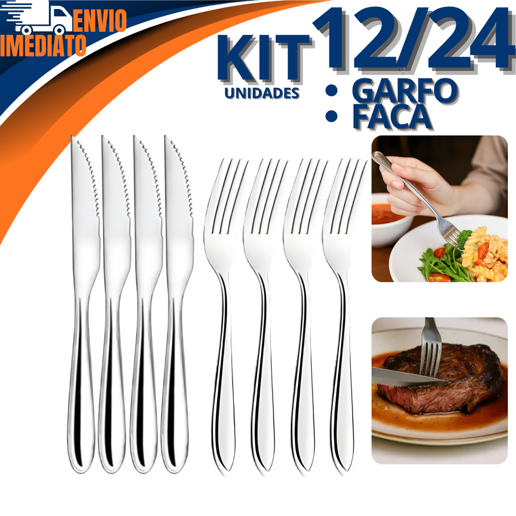 Comprar na ShopeeKit 12/24 Talheres Garfo E Faca Em Inox Moderno Talher Premium Cozinha Buffet Restaurante Lanchonete