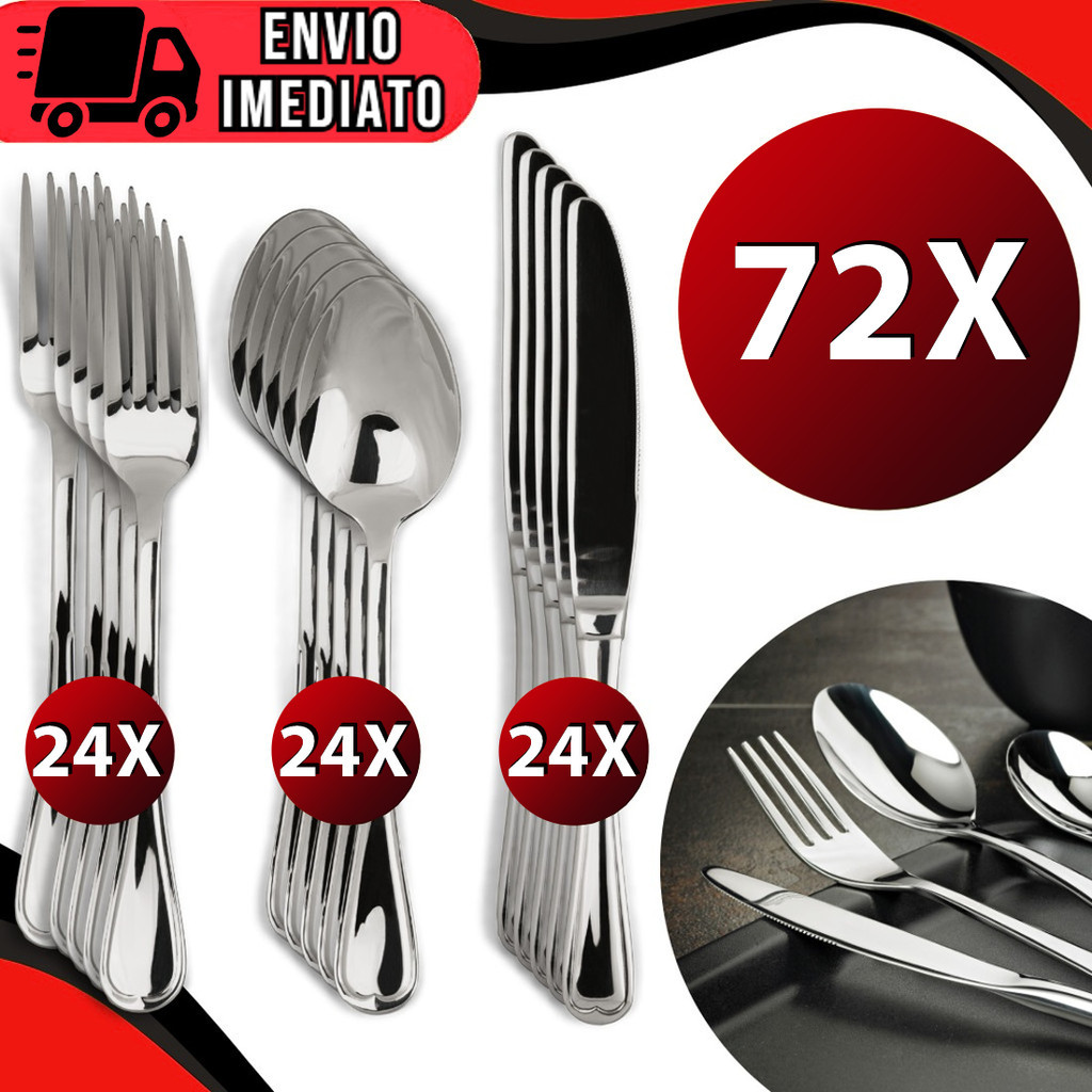 Comprar na ShopeeJogo de Talheres 72 peças Aço Inox 24 Facas 24 Garfo de Mesa 24 Colheres