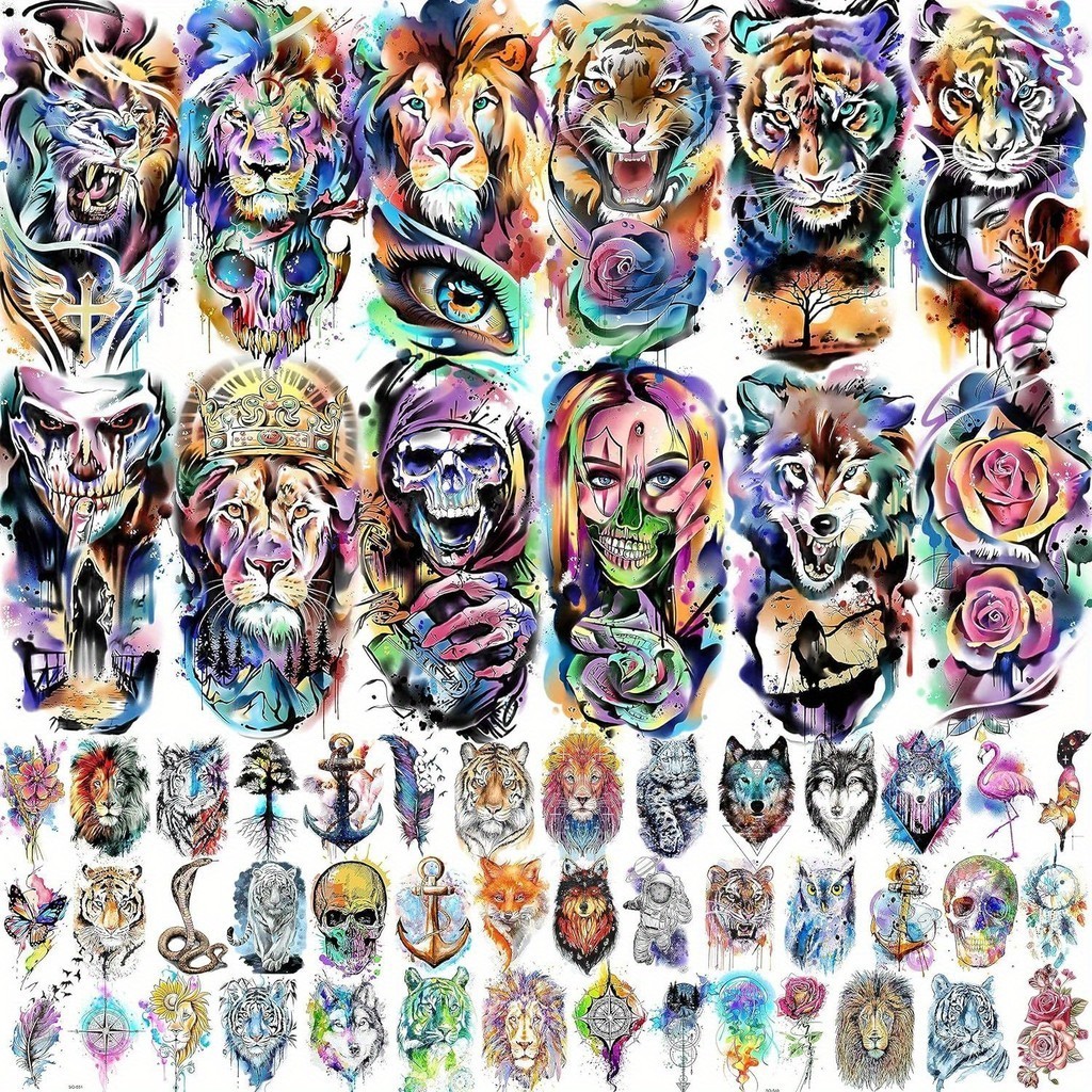 Comprar na Shopee54 Folhas 3D Aquarela Tatuagens Temporárias Para Mulheres Homens Adultos Braço , Tigre Leão Crânio Esqueleto Falsas Que