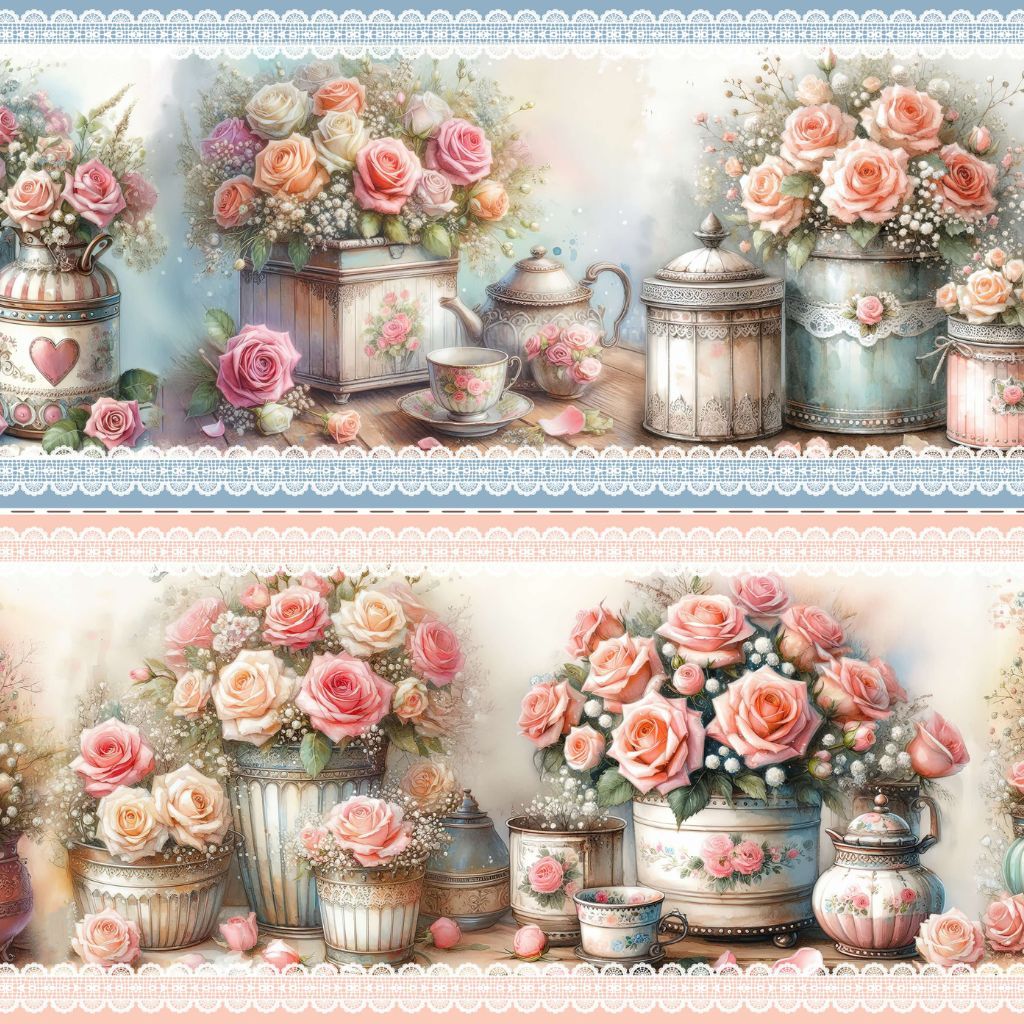 Tricoline Digital Algodão 100% Barrado Rosas Encantadas