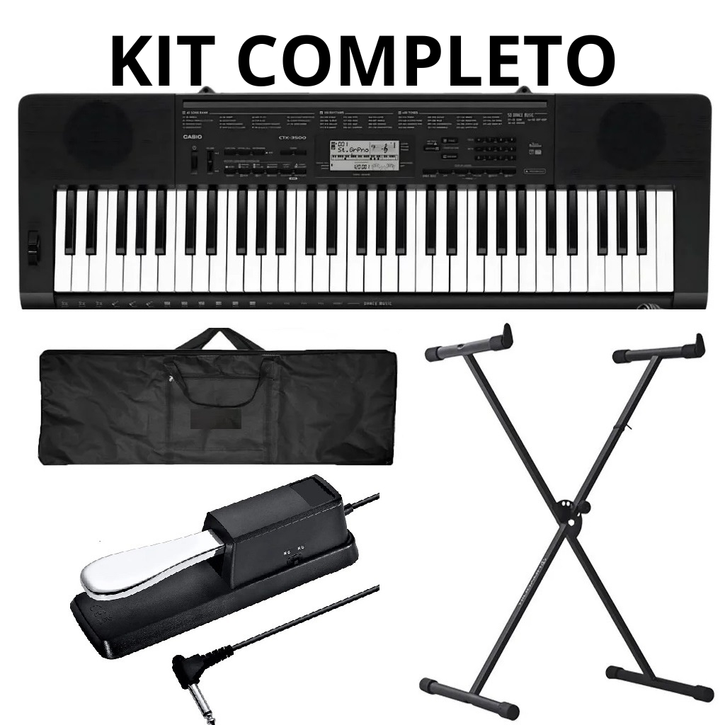Kit Teclado Musical Casio Profissional Ctk3500 + Capa+ Suporte X+ Pedal Sustain